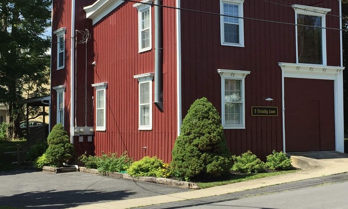 Tucked away at the edge of downtown near the water, Trinity Lane Carriage House overlooks the Seneca River and Trinity Chapel.