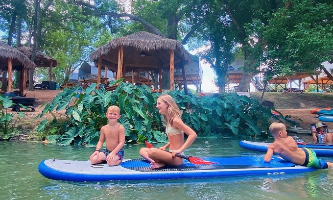 With a Safari Tent Cabin rental, you & your guests will enjoy the beautiful scenery & peacefulness of Son’s Rio Cibolo which features 2 miles of the gorgeous Rio Cibolo Creek with its blue spring water, and tons of activities including kayaking, paddleboarding, fishing, swimming & more!! After a fun filled day, sit ‘round the campfire at night & gaze at the big, bright, Texas starry sky! We are surrounded by large ranches which makes for a great outdoor get away from it all experience! Our Safari Cabins are fully furnished, air-conditioned/heated and have everything you need to stay comfortable including foam mattress beds, linens and towels, kitchenette, comfortable outdoor furniture, hammock, firepit, bbq pit & more! If you want to enjoy the great Texas outdoors without the setup and hassle of tent camping, while having all the creature comforts of home, our Safari Tents are for you! Safari Tent Cabins come with: 4 full sized beds with foam mattress and a futon couch. They also feature a kitchenette with mini fridge, coffee maker, hot plate with pots and pans and blender. We do not provide silverware and dinnerware, so be sure to bring these, though linens and towels are provided. For inside entertainment and relaxation, guests will find a smart TV, WiFi & DVD player. Outdoor amenities include: comfortable wicker seating, hammocks, fire-pits, BBQ pits, picnic table, outdoor lighting, water and electricity. The unique design of our Safari Tent Cabin allows you to open up the entire back wall to enjoy an indoor/outdoor living experience, perfect for eating, relaxing and reconnecting with your friends and family. There are 2 - 6-station bathroom trailers by our Safari Tent Cabins (12 lockable, private, full bathrooms in total with hot showers) for your use. We are lucky to have 2 miles of the spring-fed Rio Cibolo Creek for you to explore and enjoy! The Creek has never been known to go dry in this section and the water, being spring fed, it is nearly the same temperature year! The Creek varies in depth from 1 to 8 feet deep along our stretch, there are spots perfect for siting and cooling off or swimming. Guests also get free use of our multiple kayaks & paddle boards! The fishing is fantastic too with large catfish and bass! Families and friends spend countless hours here swimming, kayaking, relaxing, and having fun, in and along the banks of the Rio Cibolo Creek! Son’s Rio Cibolo has lots of amenities off the creek too to enjoy as well, including: 3 pools, 4 hot tubs, basketball court, volleyball court, horseshoe pits, game room with pool table, shuffleboard, foosball, ping pong table, air hockey, horseshoes and more! At night, each cabins has their own firepit so guests can hang out around the campfire under the stars, roasting marshmallows and having fun. There are also many picnic tables, BBQ pits, hammocks and comfy furniture located throughout the property to make your stay as enjoyable and relaxing as possible. We have live on-site staff to help with anything you may need during your stay. Located on 100 acre nature resort with 2 miles of creek frontage! Guests can park right next to their cabin. Everything is within walking distance but guest can opt to drive as well. While at Son's Rio Cibolo, guests get to enjoy a free creek-side cabana rental during their stay as well as free kayaking and paddle boarding!
