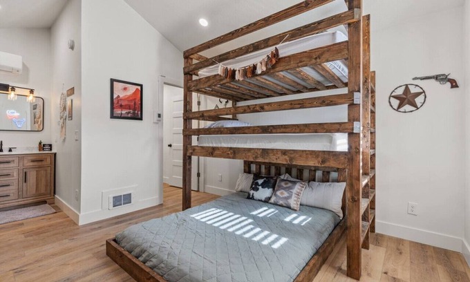 Welcome to Wild West Cabin, your ultimate getaway nestled in the serene town of St. Charles, Idaho, where rustic charm meets modern comfort. Located just 5 minutes from the picturesque North Beach of Bear Lake, Wild West Cabin is more than just a place to stay – it's your gateway to an unforgettable adventure. Each thoughtfully designed cabin invites you to unwind in style, with rustic touches that evoke the spirit of the great outdoors while offering all the modern comforts you crave.