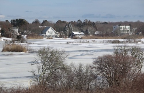 Our custom-built (2005) year-round second home will welcome you to experience summer relaxation, or the occasional winter getaway, in style. The house is near charming Wakefield, Narragansett, Westerly and several of RI's best beaches, and we include a beach pass to Matunuck Beach. The house, equipped with a residential elevator serving all levels, is a three-level “upside down” house with central AC and gas fireplace; the main living, decks and master bedroom are on the top floor for maximum views of Green Hill Pond and your private yard. Start your day with morning coffee in the tree-tops on the top deck overlooking the pond. Head out to explore the pond by kayak or canoe from your private dock. Spend a cozy winter day reading by the fire, or streaming the game on smart TV's, or cooking in the oversized kitchen. Come summer, you can canoe, kayak, or rent an outboard from a local marina to cross the pond to a private beach; or drive to a different gorgeous RI beach each day. Come home from the beach to an outdoor shower, then enjoy sunset cocktails on the roof deck with views to the ocean and Block Island. Cook your dinner on the outdoor gas grill or in the large, well-equipped kitchen with double ovens (convection optional), microwave, gas cooktop. Eat it on the covered deck or the large dining room. Then climb into comfortable beds in one of the four bedrooms (one king, two queens, two bunks) with the ocean waves in the background (or the quiet hum of air conditioning). The occasional rainy day? No worries! The upstairs living room is spacious for quiet reading, music (or napping), the downstairs living room has a smart TV with streaming, DVD, board games, etc. WiFi throughout the house. Mystic Seaport, Aquarium, Newport and more within a half hour’s drive. Our elevator serves all three levels so everyone can be included, and we have a Tesla Electric Vehicle charging station in the garage.