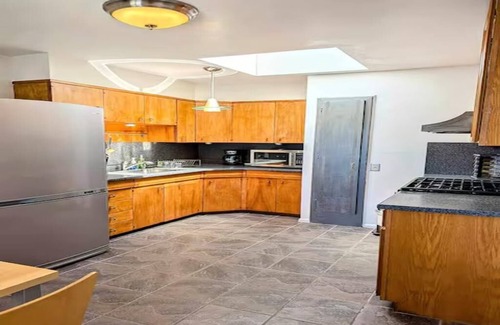 • Fully stocked chef’s kitchen with stainless steel appliances