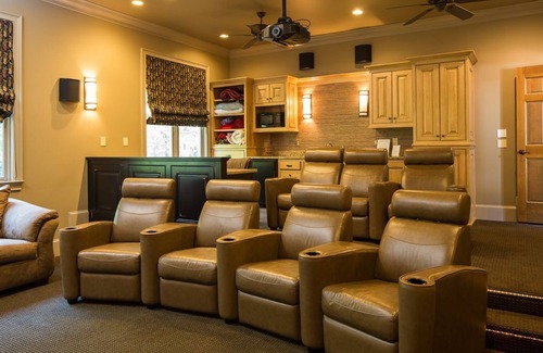 The Estate has 8 bedrooms, 6 full baths, 3 half baths and sleeps 25. The large front porch is the best spot for drinking coffee in the morning. There are 4 different dining areas that will seat up to 25 people. 13 French doors throughout the home open up to over 27 seating areas under covered porches and verandas. The 12-seat theater is fully equipped with a huge 85 in TV and surround system and the ability to stream movies. The Master Suite is on the main level with a HUGE walk-in closet. The Master Bath features marble floors throughout with a 2 person jacuzzi granite tub, private tiled 2 person steam shower and his and her dressing areas with granite tops.