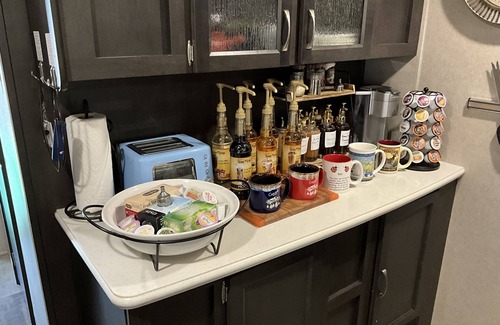 Large PUMA RV with deck and beautiful view of the Payette River. King bed with sofa sleeper. Spacious with open floor plan, large kitchen area with island, 1 bedroom and 1 bath. Fast skylink Wi-Fi available. Fire stick for streaming on the 2 TVs. New Ninja Smoker/BBQ. Clubhouse has ping pong, horseshoes, picnic area , and pool (pool currently closed for renavation) Take the path along the river a quarter mile down and you’ll find a Whitewater park, volleyball court, bocceball, horseshoes, disc golf, geothermal pool, and pickleball ball court. Bring your fishing poles/paddle boards/kayaks to put in the river just 300 feet from the RV. Servalance one camera at parking deck area