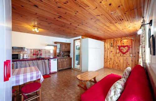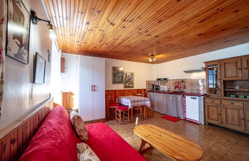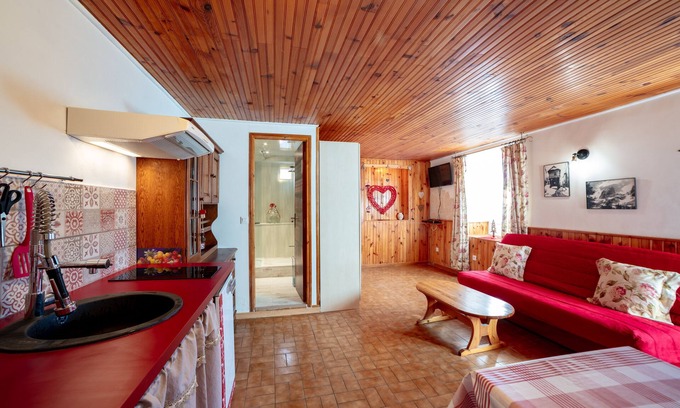 With a magnificent view of the mountains, studio of 25 m² for 2 or 3 people, fully equipped, fully renovated with a main room with a fully equipped kitchen, a sleeping area with a real bed + 1 click -clack with very good bedding, and TV and a fully equipped bathroom.