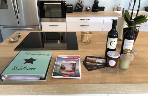 The kitchen is fully equipped with American fridge (fresh water, ice and crushed ice), dishwasher, oven, microwave, toaster, Dolce Gusto coffee maker, raclette machine, blender, induction hob, hood...
