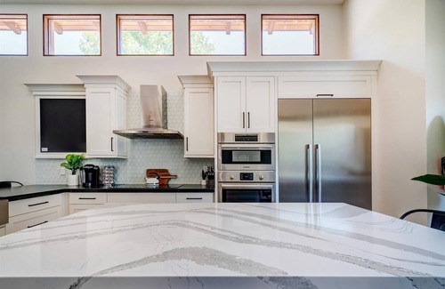 Modern Kitchen: Enjoy the convenience of a fully equipped kitchen with stainless Bosch appliances and quartz countertops, allowing you to prepare meals and celebrate special moments without leaving your luxurious retreat.