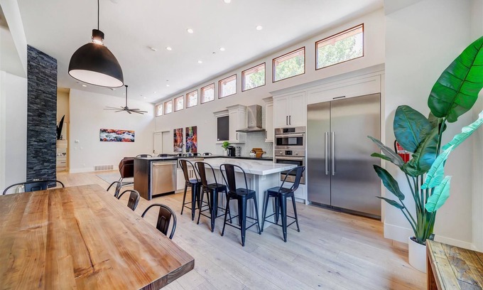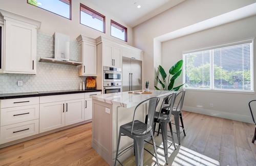 This recently remodeled 3-bedroom home features modern design elements and upscale amenities, including a brand-new full kitchen equipped with Bosch appliances, a dining area perfect for shared meals, and a private patio designed for outdoor gatherings. Your wedding festivities can extend seamlessly onto this inviting space, complete with a grill and breathtaking views. The home boasts high ceilings, luxurious finishes, and two full bathrooms with elegant walk-in showers, ensuring a delightful experience for you and your guests. Additionally, enjoy access to a luxury pool where you can unwind and celebrate in style after the ceremony.
