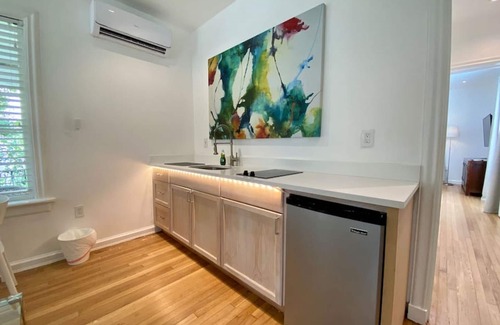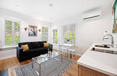 A cozy ground-floor one-bedroom apartment with a private patio in a beautifully renovated historic landmark, the Douglas-Trager House. There is free street parking half a block away from the house (do not park over the house block).