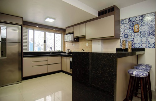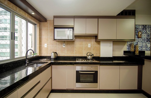 - Cozinha bem equipada com utensílios e eletrodomésticos para preparar e servir suas refeições no conforto do local;