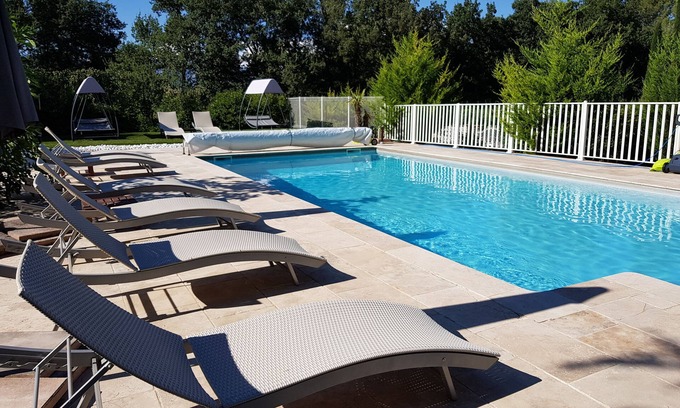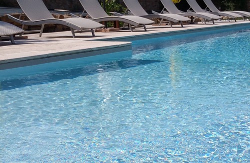 With its secure swimming pool of 14 * 5m with a 'beach' ideal for the little ones (who have a foothold on this part) or for the relaxation of the big ones, and its 150m² terrace, you can lounge on the deckchairs in the sun and the song of the cicadas. The water is treated with salt, and therefore benefits from an automatic regulation system, non-aggressive for the skin.