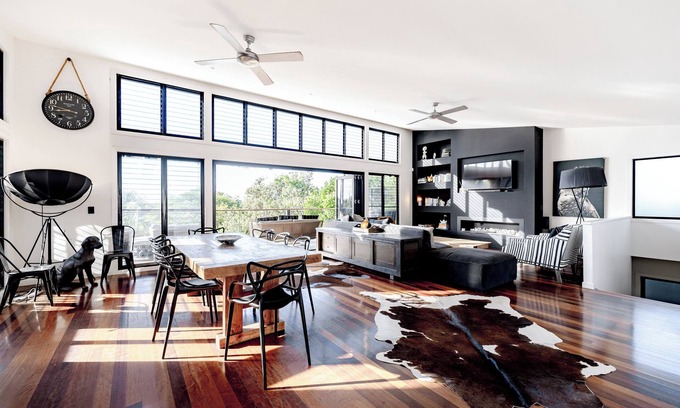 Enjoy a relaxing and extremely private beach holiday in this modern beach home located in a natural absolute beachfront area of Noosa. Relish native bushland & ocean views from the decks of this family home which is set over three spacious levels. The fully air conditioned house is absolute beachfront with private access to the beach via a bush track from the rear. No need to worry about crossing any roads to the Beach. Luxurious furnishings & finishes ensure you have a fabulous Noosa stay.
