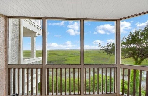This 2-bedroom 2 full bath condo is located mid-island in Sea Palms with amazing marsh views. Great for a quick golf trip or a family getaway. Has open living room/dining room and kitchen with bedrooms on either side of the living area. Master suite has a king bed and screened in porch off the bedroom. Guest bedroom has sitting area 2 twin beds and small wet bar and own full bath. Balcony off the living room has great marsh views and you can always walk up to the clubhouse at Sea Palms and grab breakfast/lunch or dinner it is open to the public.