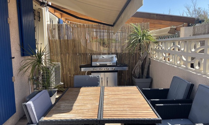 35 m2 air-conditioned house with 2 bedrooms and beautiful terrace 100 m from the beach | House in Frontignan