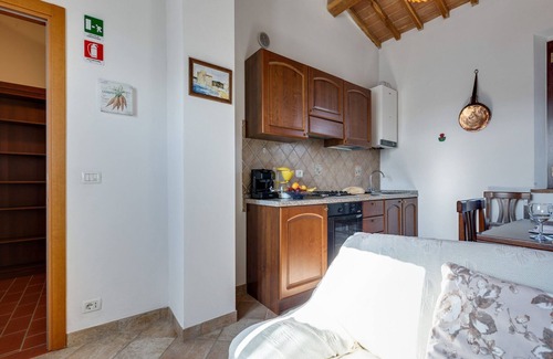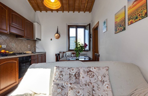 Nestled in the beautiful valleys of Tuscany, this farmhouse is located in Buonconvento. It has a shared swimming pool to relax and rejuvenate. The stay can host a small group or a family comfortably. Notably, the flat is on the first floor and there are 14 steps to access it and there is no balcony.