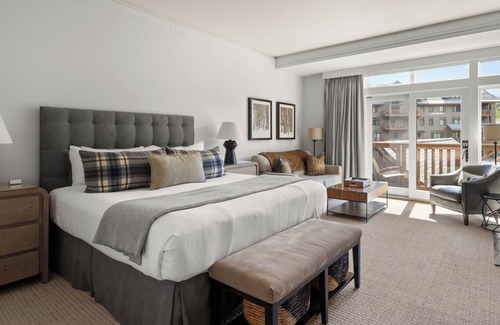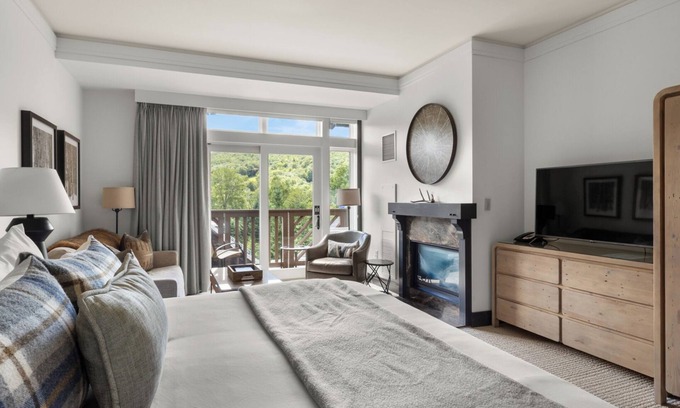 Welcome to our luxurious guest room inside the Lodge At Spruce Peak! As soon as you enter the room, you'll be greeted with a warm, inviting atmosphere that perfectly blends modern design with rustic mountain charm—located on the third floor with picturesque mountain views from your private balcony. Our studio room offers the perfect blend of luxury and comfort, creating the ideal retreat after a long day on the slopes or exploring the resort any season. We can't wait to welcome you.