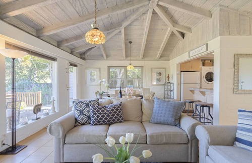 The 2-bedroom, 1.5-bath home is also conveniently located just 10 minutes by car from downtown Carmel, the Monterey Bay Aquarium, Cannery Row and Asilomar, and about half an hour from Big Sur.