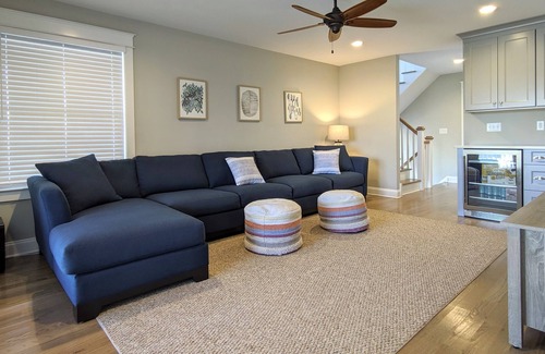 See and hear the ocean from the living room, dining room, three bedrooms, and three decks. At almost 34 feet off the ground, the roof deck has spectacular, unobstructed views of the entire island, including the ocean, the bay, Fantasy Island, and Atlantic City at night. Featuring a large outdoor gas grill, a gourmet kitchen with a Wolf range, and a large dining space, you will have everything you need to enjoy your stay.
