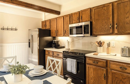 This 1,150 sf unit enters into a shared common area living room space furnished with a TV, table, chairs, bench and games - a perfect place for gathering for chats, games and meals, or even working from your laptop on the 1000 mb WiFi ultra fast internet.