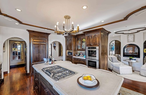 There are nine sleeping areas in the home, each with a gas fireplace, and every bath tub in the home has jets. Some rooms are en suite to one another. #1-#8 are upstairs. The Charlie Chaplin Wing can be completely closed off from the rest of the home.