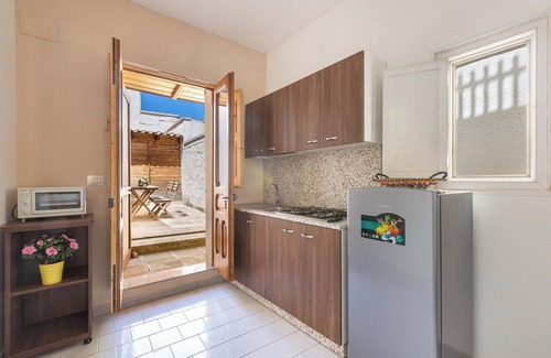 Indipendente ed autonoma, la casa è composta da soggiorno pranzo con angolo cottura a vista,1 camera matrimoniale,1 camera doppia, 1 bagno doccia e un piccolo cortile dove poter pranzare e cenare all`aperto.