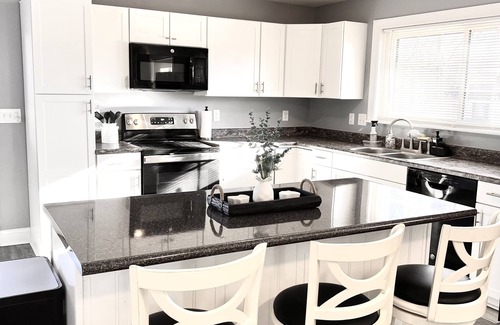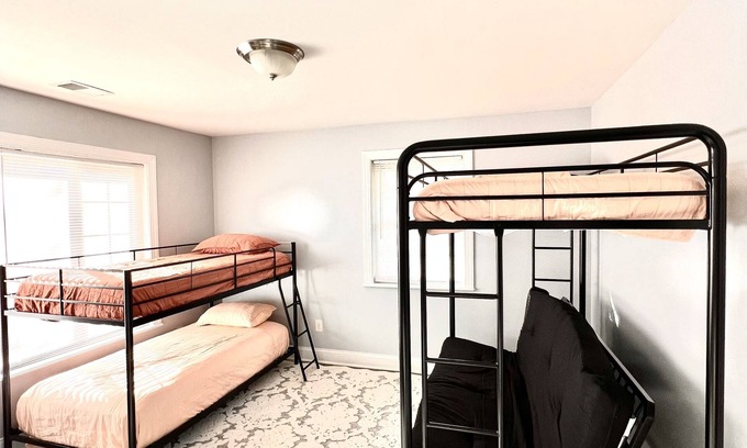 Experience the comfort of a king-sized bed in the main suite with a private bathroom. The second bedroom offers two bunk beds, while the third bedroom features two queen beds. Each room has its TV with different streaming options. Conveniently located 15 minutes from Concord Mills and 25 minutes from uptown.