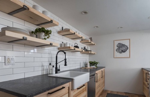 This newly renovated cabin is perfect for families. It's a cozy home away from home that is great for the winter and summer alike. There's a spacious kitchen open to the living room with a large TV and wood-burning fireplace. The dining room can accommodate 8-10 people with a large table and bench seating with large windows and a view of the lake.
