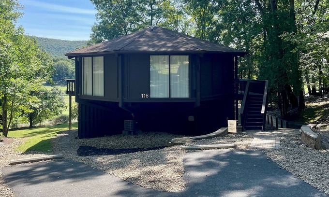 - Round Cabin - 5 min to Bedford - Deck - Hike- Golf - Across Omni Bedford Springs