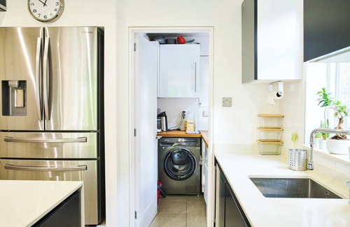 The entertaining kitchen has underfloor heating, sonos surround system, lovely picture window to garden( for cat/squirrel/bird watching :-) ).