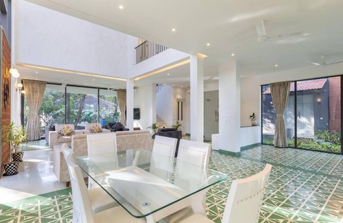 3BHK Villa with Private Pool near Anjuna is located in Old Goa, just 4.7 miles from Chapora Fort and 7.4 miles from Thivim Railway Station. This property offers access to a balcony, free private parking, and free Wifi. The villa is also equipped with a garden, an outdoor swimming pool, and a terrace where guests can chill out. The spacious villa is composed of 3 bedrooms, a living room, a fully equipped kitchen, and 4 bathrooms. Towels and bed linen are featured in the villa. For added privacy, the accommodation features a private entrance. The villa offers an à la carte or vegetarian breakfast. Basilica of Bom Jesus is 14 miles from 3BHK Villa with Private Pool near Anjuna, while Church of Saint Cajetan is 15 miles away. Manohar Parrikar International Airport is 12 miles from the property.