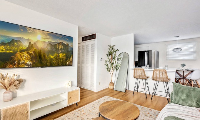The property is in a quiet, residential area. This newly refurbished ranch is fully furnished with everything you will need to make your stay comfortable.