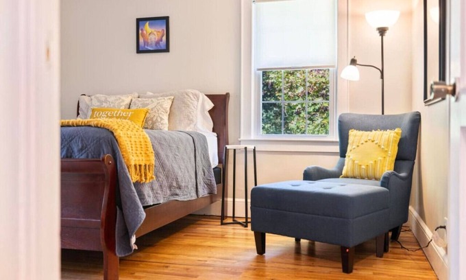 Upstairs: 3rd bedroom, second full bath, and a cozy reading nook