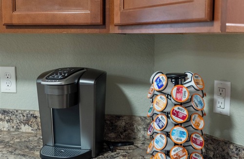The master suite has a fully stocked bathroom with towels, toiletries, and soaps for your privacy away from your other guests. Enjoy the privacy of pampering yourself in this freshly redecorated master suite.