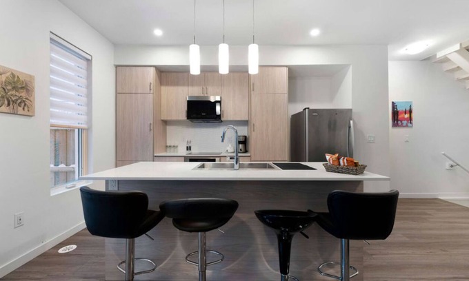 Welcome to our cozy and stylish 3-bedroom, 2-bath home! Enjoy a fully stocked kitchen, coin-operated laundry ($2.50 per wash, $2.50 per dry), and two FREE parking spots in a quiet residential neighborhood—just a 10-minute drive to Centennial Beach and the vibrant Barrie city center.