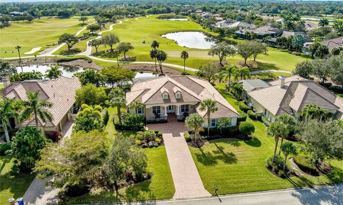 The house is located in Verandah Golf and Country Club Community. Verandah is a private, gated, golf course community in Fort Myers FL. The luxury Old Florida-styled Verandah homes exist among moss covered mature oak tree lined streets. The club features full-service dining options, social events and activities, fitness and recreation options. The house is located 5 minutes by bike from the clubhouse.