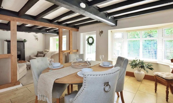 Charming 3-bed cottage just 7 mins from Dewsall Court Wedding Venue. Sleeps 6, with country cottage charm, fast Wi-Fi and private parking. Surrounded by large, peaceful gardens that are a mix of wild and maintained. Ideal for wedding guests, families or friends. A cosy, well-equipped base for exploring Hereford or relaxing year-round in a countryside setting.