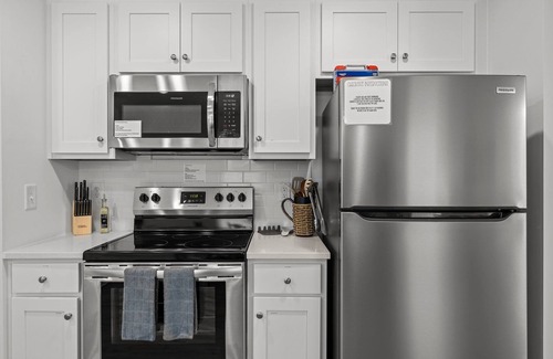 The kitchen is well equipped with many appliances (crock pot, toaster, blender etc.), utensils, plates, cups, pots, pans, coffee maker (nespresso and full pot brew). We provide a starter pack for each guest to help kick off their stay.