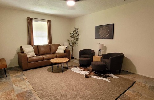 Welcome to our charming 3-bedroom, 2-bath home, ideally located near Montgomery Airport and nestled between historic Selma and Montgomery. Enjoy a comfortable stay with a king bed, queen and a full bed, fast Wi-Fi, and a fully stocked kitchen. Our pet-friendly home features a fully fenced yard, perfect for your furry friends. Situated in a vibrant, predominantly minority neighborhood, you'll experience authentic local culture while staying in a cozy, convenient, and welcoming space!