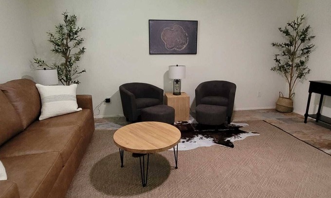 Welcome to your home away from home! Step inside our beautifully updated 3-bedroom, 2-bathroom Airbnb, where comfort and style await you. As you enter through the front door, you're greeted by a cozy living room, perfect for relaxing after a day of exploring. The living room features comfortable seating for the whole family, along with a smart TV for your entertainment needs.