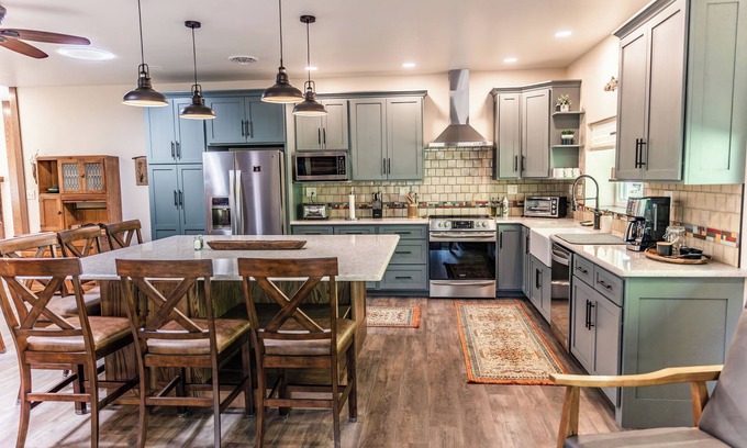 -All of the modern high-end finishes provide even the most discerning travelers with everything you would expect from a 5 star experience. Including large oversized TV’s in the living space, fast internet, comfortable furniture, completely outfitted kitchen and a peaceful open concept home! We have a breakfast/reading nook and an outdoor patio which backs up to a tree covered hillside.