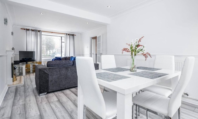 3BR-Sleeps5-Parking-Garden-AccesstoLondon is located in Brentwood. 3BR-Sleeps5-Parking-Garden-AccesstoLondon provides accommodation, featuring TV, Balcony/Terrace, Wellness Facilities, among other amenities. This House features TV, Balcony/Terrace, Wellness Facilities, to make your stay a comfortable one.