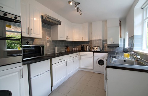 The kitchen includes a fridge/freezer, dishwasher, electric hob and oven, a combined washing machine/dryer, electric kettle, Nespresso machine and a toaster. All cutlery, crockery, utensils, glassware, etc, are provided including pans and oven-ware.