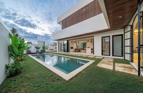 Unwind at this modern 3BR villa in the heart of Uluwatu, just a short walk to Thomas and Uluwatu Beaches. Enjoy partial ocean views, a private pool, and stylish open-plan living. Perfect for surfers, couples, families, and remote workers. Includes daily cleaning, laundry, electricity, water, fast Wi-Fi, and pool/garden service—everything you need for a relaxed, hotel-style stay.