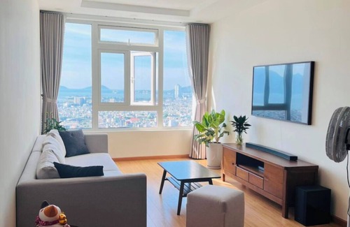 A spacious 110m² flat on the 30th floor boasts breathtaking views of the city, lake, and ocean. Ideal for families or groups, this centrally located property offers effortless access to Da Nang's top attractions. Conveniently situated near Da Nang airport, the flat provides a home-away-from-home experience, with complimentary airport pickup, fresh towel service every 2 days for stays of 4 nights or more, and professionally cleaned bedding and towels between each guest's stay.