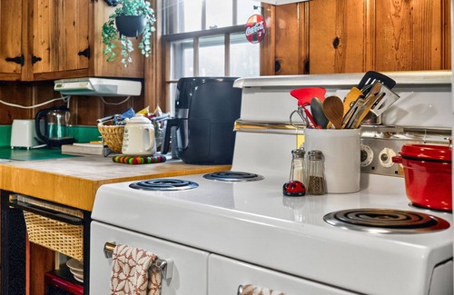 Slightly Off Retreat is truly a gem: peaceful, comfortable, close to everything! A unique, fun apartment that features a full bath, 2 bedrooms (queen and full beds), huge den, kitchen and laundry room. Most guests find it hard to leave the covered porch with the idyllic view.