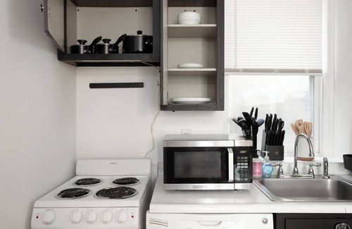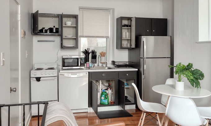 The studio boasts a fully equipped Kitchen, designed for effortless meal preparation without a stove. This compact yet functional space is equipped with modern amenities, providing everything you need to whip up delicious dishes with ease. Whether you're cooking solo or with loved ones, feel free to utilize all the resources available in the kitchen.