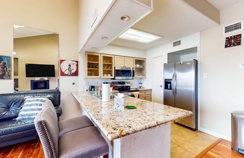 The space is furnished to ensure complete modern comfort and convenience throughout your stay. The well-appointed kitchen is equipped to handle all your home cooking needs. The open-concept design seamlessly blends the living room and dining area. You can stream shows and movies on the smart TV or use the free WiFi to web browse and do some remote work. Additional perks include central air-conditioning and a private washer/dryer.