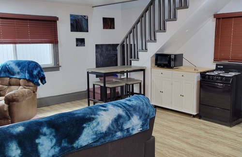 Welcome to the 3rd Street Stop cottage. Originally a mother-in-law cottage, but now your vacation destination. This 800 sq ft cottage house has all you need for a relaxing stay in Baker City, Oregon. An open bedroom on the main floor hosts twin beds, while the upstairs loft private space has a king bed. Our place is walking distance to historic downtown, park, and local shops and restaurants.