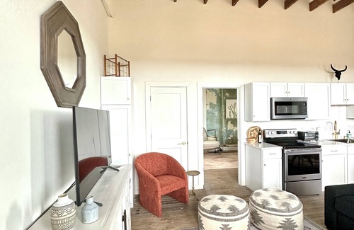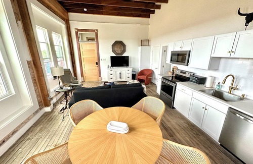 Escape the Big City and unwind in Honey Grove; one of the last true small towns in Texas. Built in 1891, your stay will be exceptionally unique. Experience carefully designed interiors, complemented by original walls and flooring, to offer the perfect mix of nostalgia and comfort. Enjoy evenings under the stars with panoramic views on two rooftops. Spend time around the fire while grilling and enjoying outdoor games and activities. Located minutes from the newest lake in Texas, soak up the sun at Bois D’Arc. Or, simply explore the sites in historic downtown Honey Grove.
