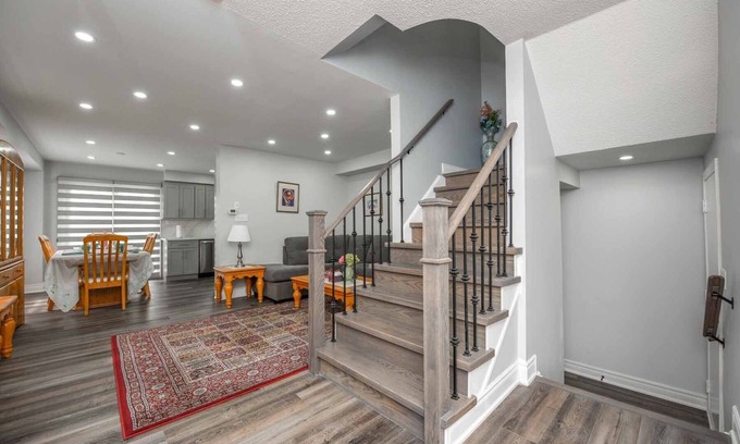 4 + 1 bedrooms 4 baths Entire Home in Mississauga has 5 Bedrooms , 3 Bathrooms, and max occupancy of 7 people. The minimum rental for this property is 1 nights, but this can change depending on the season you plan on staying. Previous guests have given good rated it, and VRBO labeled it a top-rated House because of the excellent services rendered by the owner or manager of this House, and has consistently provided great experiences for their guests. Most families or guests that use it recommend it to their friends and some of them are repeat guests. House has a friendly neighborhood, and the Churchill Meadows has interesting places to visit. If you want to learn more about the House in Churchill Meadows, such as places to visit and things to do nearby, you can check below to learn more.