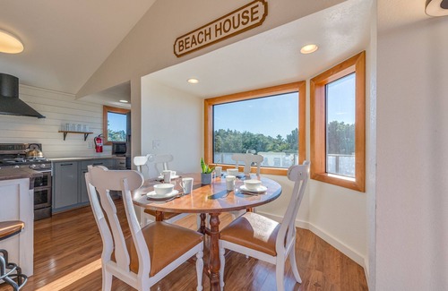Occupying more than 4 acres of beachfront property, this 4BR/3.5BA home provides a peaceful coastal getaway. The spacious yard includes a scenic, 5-minute private walking path to the ocean, a firepit, and a hot tub. Gather on two balconies to share alfresco meals and admire gorgeous seaside landscape views.